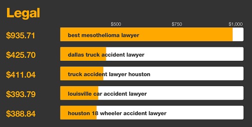 Here’s a visual breakdown of the top 5 most expensive keywords in the legal sector: