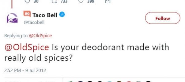 Another classic example is when Old Spice and Taco Bell were both snarky with each other: