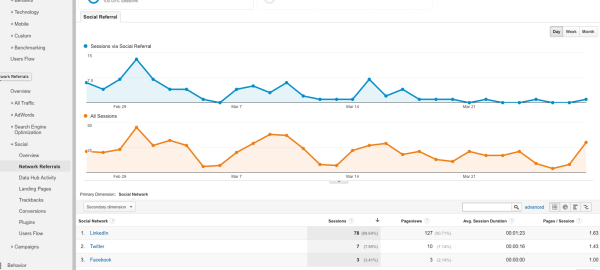 This means that you have to measure the impact of your social posts on your website traffic and once they get to your website, then you can measure what they do from there. To see this metric, login to your Google Analytics account and navigate to Acquisition > Social > Network Referrals Here you’ll see the traffic coming to your site from the different social platforms.