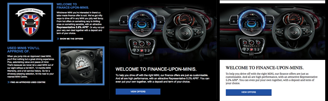 MINI have been going through a rebranding process for a while now and it seems to be a phased approach happening gradually. It’s no surprise their emails have gone through some changes as well to mirror this transition, so I’m going to be focusing on one of their emails and the transition it has gone through in design over the last six months.