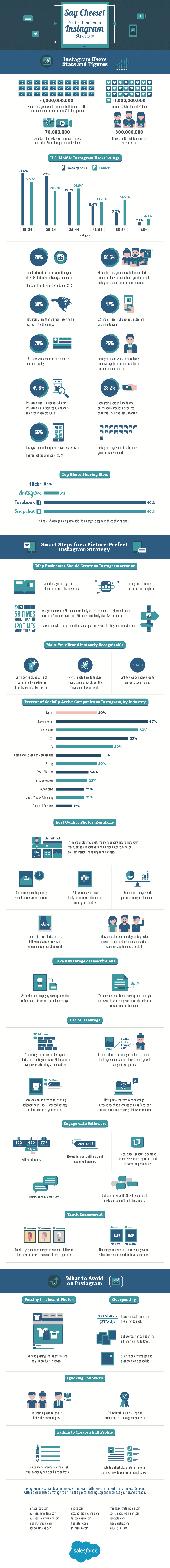With over 300 million active users and counting, it is vital that you have a great Instagram strategy for your business. Collectively they have posted over 30 billion photos and leave 2.5 billion likes each day. Instagram users are also 58 times more likely to like, comment on or share a brand’s post than on Facebook or Twitter. How’s that for engagement? Salesforce Canada just posted all the details. Armed with this information, you need to create a strategy now!