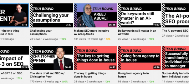 Kevin Indig, VP SEO & Content @ G2, who has built a formidable reputation of B2B folks, is publishing at a cadence of over one video per week right now. He’s mixing it up between long interviews and short informational videos — which you can also experiment with.