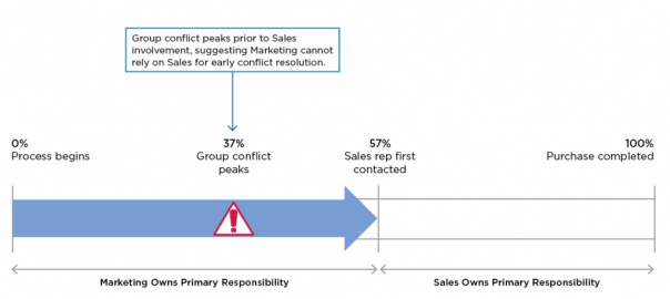 The hand-off between marketing and sales is notoriously tricky; often, the peak conflict within an account occurs before sales is brought in. (Image source)