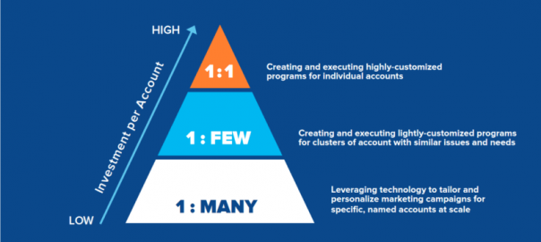 You can also get more sophisticated in your approach by adopting a blended ABM model, which involves segmenting your target account list by strategic importance: high-value accounts at the top, mid-range accounts in the middle and the rest of your target accounts at the bottom.
