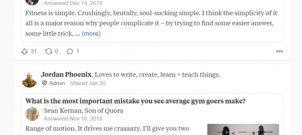 After following a Space, simply start scrolling through the curated questions and answers. For example, check out the questions below. Both “what are the most underrated fitness tips?” and “what is the most important mistake you see average gym-goers make?” could both be interesting topics to cover on your blog.
