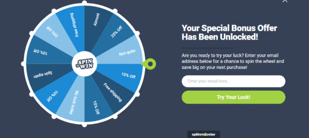 For instance, you could offer a “Spin to Win” game like in the example below. Visitors to your website can spin the wheel for a chance to win a discount on your product or service.