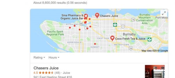 Here’s what came up when I said, “fresh juice Vancouver.”