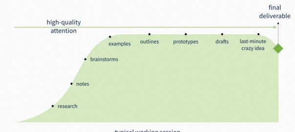Instead of delivering one big lump of value at the very end, you organize your progress in a series of short sprints each ending with a tangible deliverable, like a progressively summarized note, brainstorm, lists of examples or a prototype.