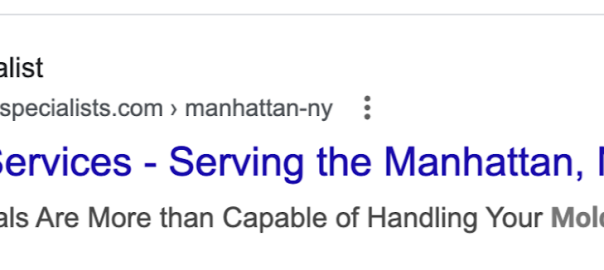 Say you’re a restoration company offering mold remediation services in NYC. A prospective customer might search terms like “mold remediation NYC,” “mold removal service near me,” “professional mold remediation,” or “mold cleanup services.”