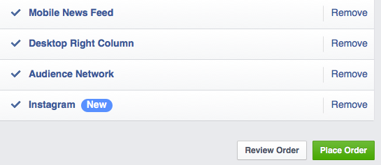 Once you have created and customized your ad options, Instagram is automatically included, which can be deselected if needed: