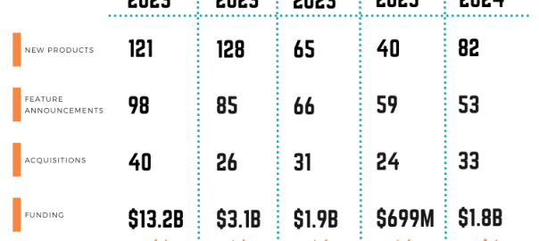 CabinetM released its Q1 2024 Martech Innovation Report, a quarterly summary of new technology introductions, feature updates and acquisitions. It found a substantial decrease in martech investment year over year, a significant increase in new products and more.