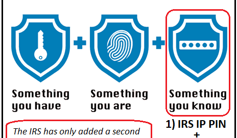In Mid-January taxpayers will be able to use the ‘Get an IP PIN‘ tool at IRS.gov. If you don’t already have an account on IRS.gov, you must first validate your identity by satisfying two identity factors, one from each of the lists below: