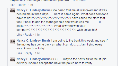 This shopper appears to want a public forum for her grievance, which is pretty normal today. Many more customers are taking their complaints to this type of public forum. They want to be heard by a larger group. If they only wanted to resolve a situation, they might call customer service directly, but many who post on corporate social media pages are looking for a bigger audience.