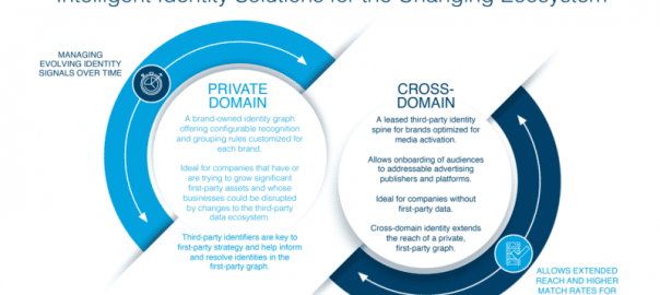 The private graph works together with cross-domain graphs. These are graphs that are built by third-parties for the purpose of optimizing media activation and extending the reach of the private graph. This combination allows the collection, tracking, resolving, and acting on the data to happen at adtech speed. Another way to look at this is the blend of two graphs – private domain and cross domain – working together to deliver exceptional consumer experiences.