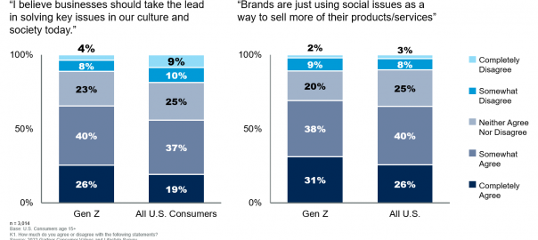 Specifically, Gen Z is more likely than older groups to want brands to take stands and talk about issues. And they are more willing to put their money where their ideals are. According to Gartner research, today’s young adults are about as likely as older consumers to think brands engage in activism to sell their products and services. Nonetheless, Gen Z wants brands to do so anyway. And they are more likely than older consumers to want brands to be a part of solving key societal issues today.