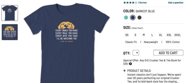 Having a clean and responsive design will help engage your customers and point them to the most important parts of your page: clear CTAs, product descriptions, and professional photos. When a customer lands on one of your product pages, they should first see a clear CTA. Make sure you have a clear CTA that aligns with your brand and will help lead your customers to become buyers. The CTAs should be placed above your product descriptions and next to your photos so that it is clear which product you are selling. You can see an example of an awesome product page layout here from one of my favorite online stores LIFE IS GOOD.