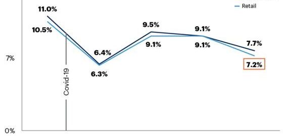 Performance marketing has been maintained and investment in conversion to sales with a reduction in driving brand awareness in retail.