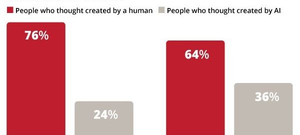 For human-generated content, 76% thought humans created the content, and 24% thought AI created the content.