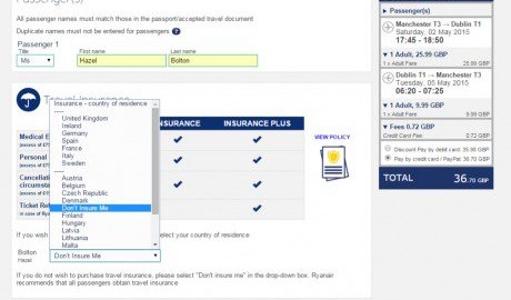Not only do you have to look in a list called ‘Insurance – country of residence’, but the free option, ‘Don’t insure me’, distinguished at all for easy access. They’ve placed it alphabetically between Denmark and Finland.