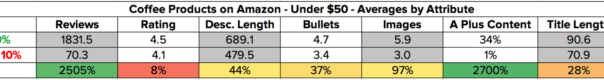 By specifically looking only at coffee products that were priced at $50 and under, over 5,000 products in total, what’s amazingly clear is that more robust product content and reviews, rather than price, are what separates products that sell well versus ones that do not.