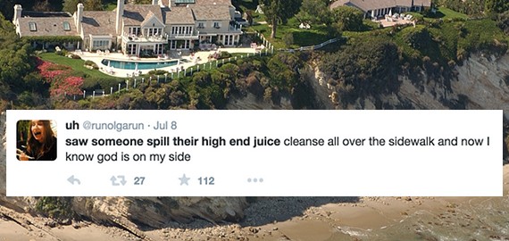 It’s a one-liner, throwing shade at people who drink juice cleanses.