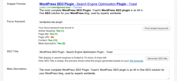 What I like about it is that it clearly lays out the elements that you need to focus on to make sure you nail your website’s SEO: URL, focus keyword, SEO title, and meta description.