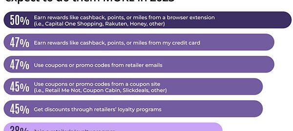 Not surprisingly, 73% of respondents already use at least one money-saving tactic such as participating in loyalty programs, shopping at discount retailers, or earning cashback rewards; and most expect to continue employing those tactics or even increase participation this year.