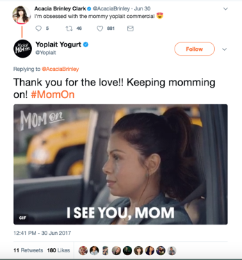 Yoplait recently put GIFs to good use when engaging with its community after the debut of its latest #MomOn campaign.