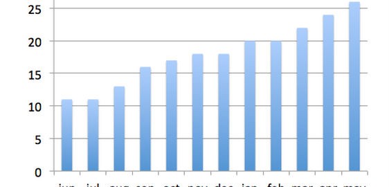 I specifically looked at what I considered to be ‘evergreen’ articles and found a slightly different pattern of link acquisition over time. In the example below 40% of links were acquired in month one but links continued to be acquired slowly but consistently over the next 11 months.