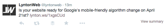 2. It’s okay to tweet a link with just the headline of the piece, but don’t do that every time! Experiment with questions or provocative statements that will pique a viewer’s interest, such as this example from LyntonWeb: