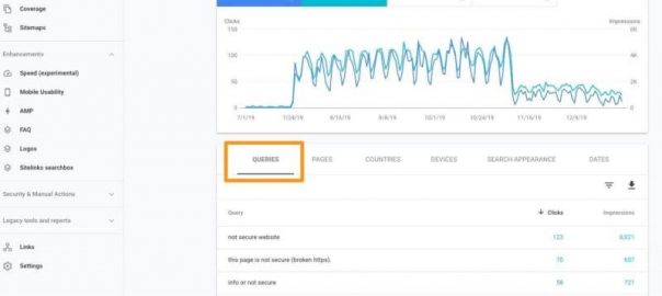 Make sure you choose search patterns that are relevant for your business and the original article. In this case, you can see a nice increase in traffic until the November Google core update that targeted relevance. The intent of the original article was about the “Chrome not secure warning” rather than how to make a website secure.