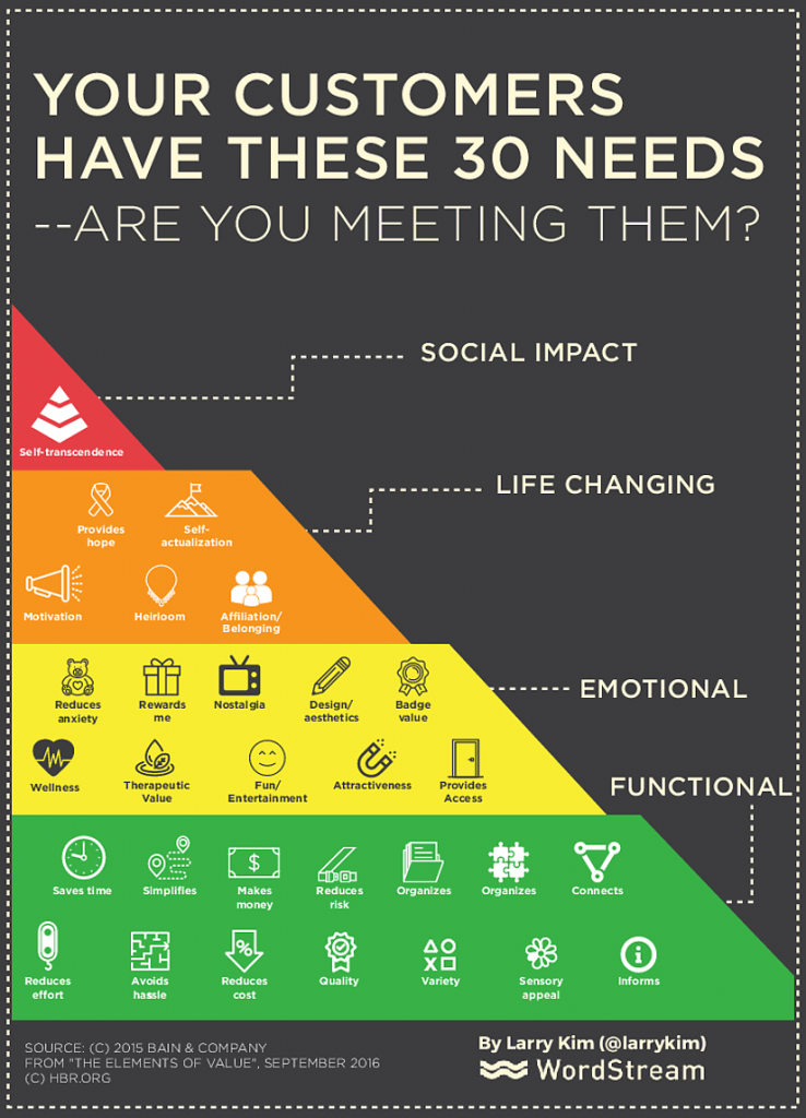 Larry Kim — April 4, 2019 Follow @larrykim — April 4, 2019 You probably remember Maslow’s hierarchy of needs from school–that model demonstrating our most basic needs (food, security, warmth, rest) at the bottom of the pyramid. The higher up the pyramid, the more complex our needs. And without the fulfillment of our physiological and … Continue reading 30 Things Your Product Absolutely Needs