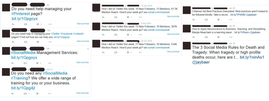 by Greetje den Holder July 29, 2016 Follow @GdenHolderJuly 29, 2016 Despite discussions that Twitter is no longer essential for your business, many people still use Twitter to share blogs and other interesting content, as shown in the image below. The content people share can be the content of YOUR company. However, in order to … Continue reading Twitter for Business: 13 Awful Things You Should NOT Do