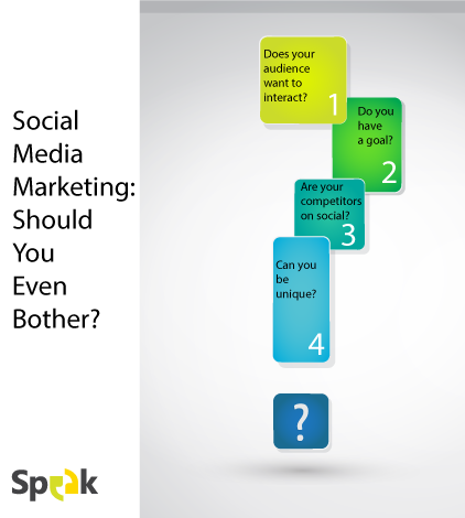 Catherine BrockJanuary 12, 2015 Social media polarizes marketers. There are those who believe, without question, that every business needs social media. And then there are those who argue that the ROI is tough to prove—which makes a full social strategy hard to justify. Amid these conflicting opinions, new business owners and marketers are struggling to … Continue reading Social Media Marketing: Should You Even Bother?