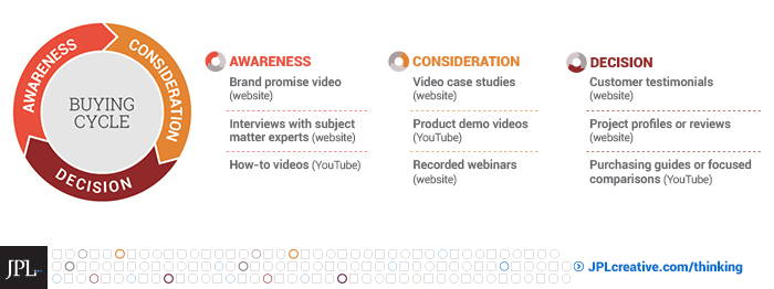 Jessica MelhornSeptember 24, 2015 Video is a powerful way to engage informed and research-savvy decision makers. However, many marketers still employ an outdated approach to video. For example, a traditional “company overview” video may be forced to carry the burden of proof. What that single video needs to accomplish is too great and it reduces … Continue reading How To Incorporate Video Across The Buying Cycle