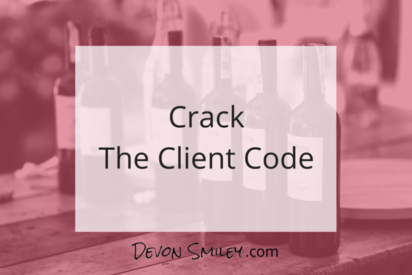 Devon SmileyAugust 25, 2015 There is no amount of online research that can match the value of asking questions to real live people. You can Google til your fingertips are blistered, lurk in forums until it starts to feel kinda creepy, or even ask your best business buddies what their experiences have been with clients. … Continue reading Crack The Client Code