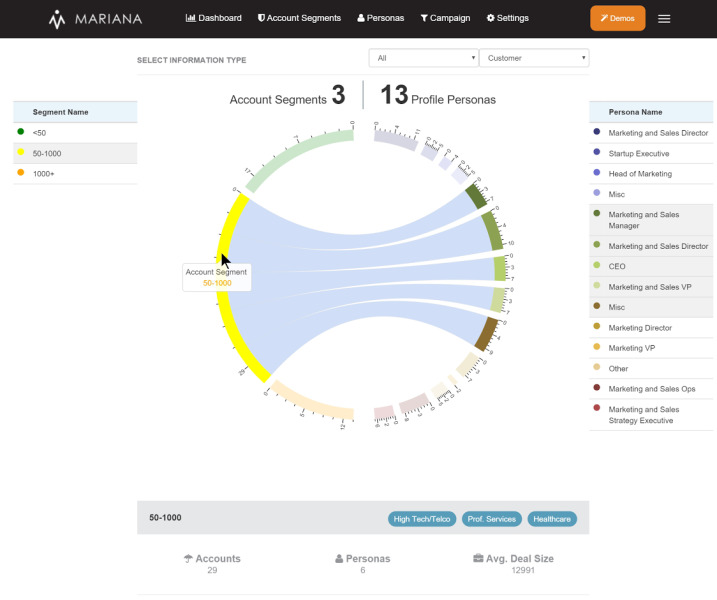 The personas are used to find decision-making individuals at targeted companies. Barry Levine on March 1, 2016 Credit: Mariana A variety of B2B predictive lead scoring firms can find and rate companies according to how likely they are to become your customer. But startup Mariana is today launching its platform so that marketers can … Continue reading Startup Mariana Launches B2B Lead Gen Platform That Automatically Creates Personas