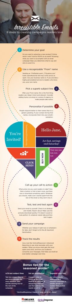 VerticalResponse — August 21, 2017 Follow @VR4SmallBiz — August 21, 2017 You’ve got your segmented contact lists. You’ve got your email topic. Now what? Fortunately, it’s not hard to craft an effective email campaign. It just takes a little forethought and care in setting it up. But if you follow the eight easy steps in … Continue reading How to Create an Effective Email Marketing Campaign [Infographic]