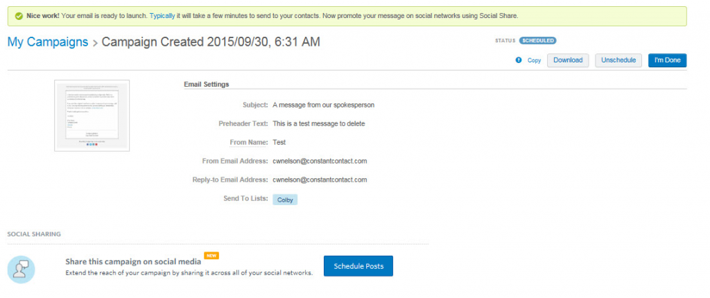 by Miranda Paquet December 18, 2015December 18, 2015 We are very excited to announce a new and improved way for you to extend the reach of your email campaign and share it on Facebook, Twitter, and LinkedIn. We call it Social Share, and it will be replacing our existing Simple Share feature. If you’re familiar … Continue reading Extend the Reach of Your Next Email with Social Share