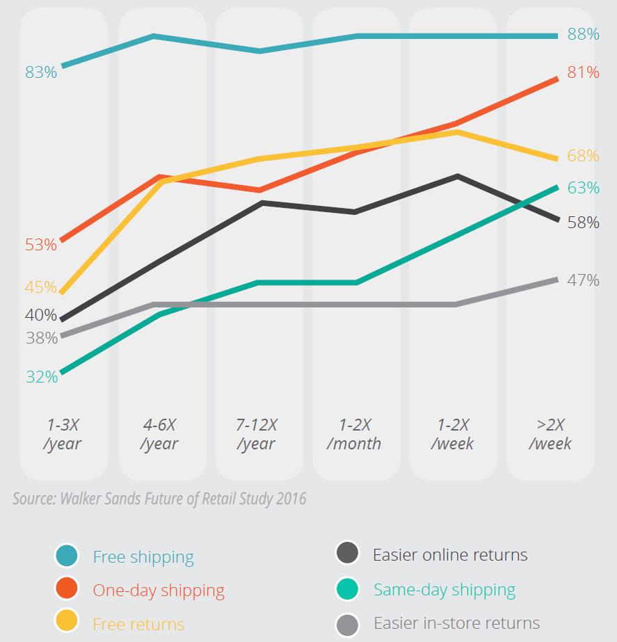 The Walker Sands Future of Retail report found nearly a third of all consumers now shop online at least once a week. Amy Gesenhues on June 9, 2016 Online retailers not offering free shipping may want to reconsider their delivery options. According to the Walker Sands Future of Retail 2016 study, nine out of … Continue reading Retail study: 9 out of 10 consumers say free shipping No. 1 incentive to shop online more