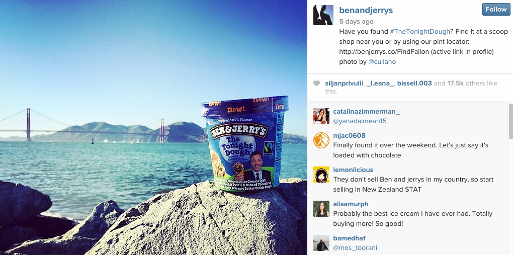 WishpondApril 18, 2015 A photo of your friend posing at the summit of a mountain, your cousin’s dog wearing his halloween costume and that delicious brunch you and your boyfriend had on the weekend – these are all perfect examples of the types of photos I scroll past every day on my Instagram feed. These … Continue reading How to Kick Instagram Ass Like Ben & Jerrys