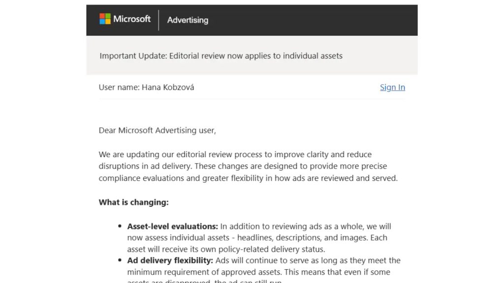 Microsoft Advertising now reviews ads at the asset level, allowing approved elements to continue running even if others are disapproved. Anu Adegbola on June 30, 2025 Microsoft Advertising is revamping its approach to enforcing ad policy compliance. Instead of outright disapproving entire ads, it reviews individual ad assets (e.g., headlines, descriptions, and images). This … Continue reading Microsoft Ads gets new granular asset-level reviews