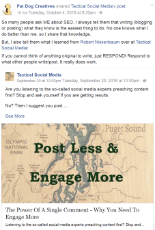 by Robert Nissenbaum Follow @rnissenbaumOctober 10, 2016 How you post and share content matters If you listen to me long enough and you’ll know I am more focused on social networking and being engaged than creating content. I’ll keep saying it too…. Your content is designed to play a supporting role. People do business with … Continue reading If You Want Results, Think About HOW You Post And Share Content