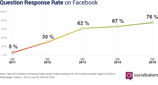 Bob HutchinsJuly 29, 2015 If you have a burning question for a company, don’t go to Twitter. Go to Facebook, where odds are three out of four you get your question answered. New Q2 2015 data on social media responsiveness (via Socialbakers) goes deep into the inner-workings of customer satisfaction and brands’ capacity for responding … Continue reading Socially-Responsive Brands Get 4x Engagement [Infographic]