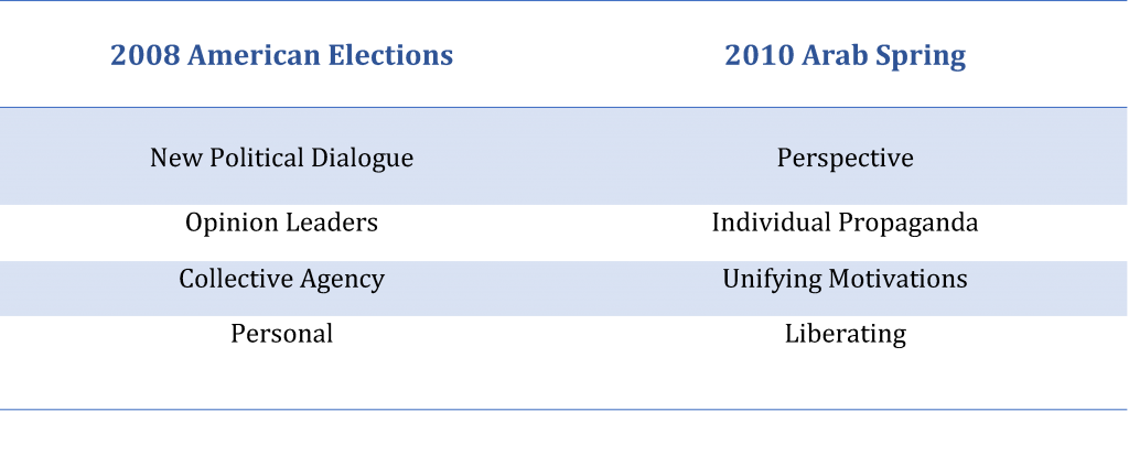 Manal BouchacraMay 13, 2015 Looking back two world events unraveled off the wheels of social media and both were political- Obama’s rise to presidency and Mubarak’s fall. Social media played a role in different parts of the world for opposing reasons. Why was Twitter and YouTube so important in the American elections and Spring revolution? … Continue reading Social Media’s Undeniable Influence On World Events: What This Means For Business