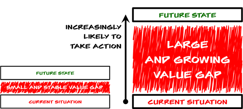 Bob Apollo — June 16, 2017 Follow @bobapollo— June 16, 2017 One of the key principles of value selling is that unless and until our customer acknowledges a problem that requires action, they have no need to invest in a solution and there can be no potential sale. But not all problems are equal. The … Continue reading Visualizing the Value Gap