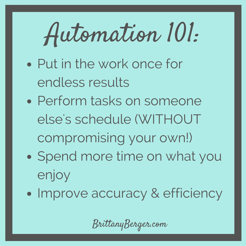 by Brittany Berger May 13, 2016 Follow @bberg1010May 13, 2016 I’ve got bad news for you. You might not be able to become more productive for your business anymore. You’ve implemented all the lifehacks. You’re using all the right time management techniques. You’re batching your tasks. Overall, you’re a damn ninja. And there are no … Continue reading Workflow Automation: A Solopreneur’s Secret Weapon