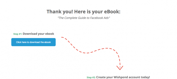 Take a look at this example on a Wishpond ebook page. Once a user converts they’re sent to a post entry page with their ebook download as well as a secondary CTA to sign up for a free Wishpond account.