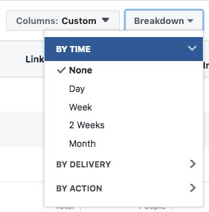 Ad Manager also offers campaign breakdowns that allow you to see reporting breakdowns by time, delivery and action.