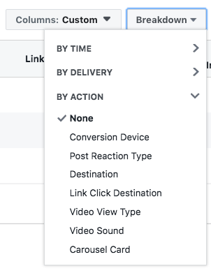 All Ads Manager functions, such as custom reporting columns, breakdowns, and filters are available in this tool.